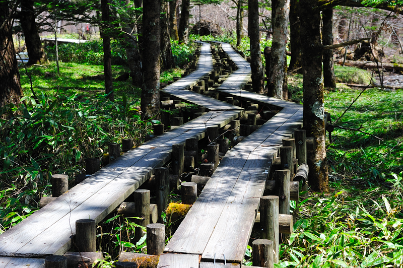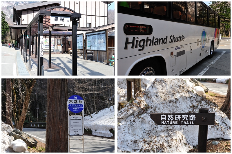 我們前一天在平湯溫泉住了一晚, 早上用完早餐便前住公車站搭低公害巴士前往大正池, 天氣相當的好, 大正池站下車後, 就可以看到往步道的牌子, 日本人叫作自然研究路