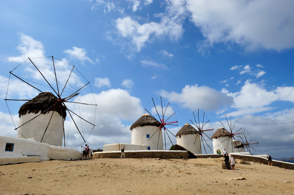 座落在海邊的五座風車, 是米克諾斯島的地標, 當我坐船進入港口時, 遠遠的就能看到, 彷彿是在迎接你的到來, 據說這些風車早期是用來磨麥, 而現在已經成了觀光客最愛拍照的景點.