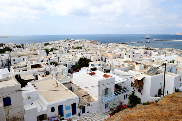 (從山坡上眺望迷宮般的米克諾斯鎮)