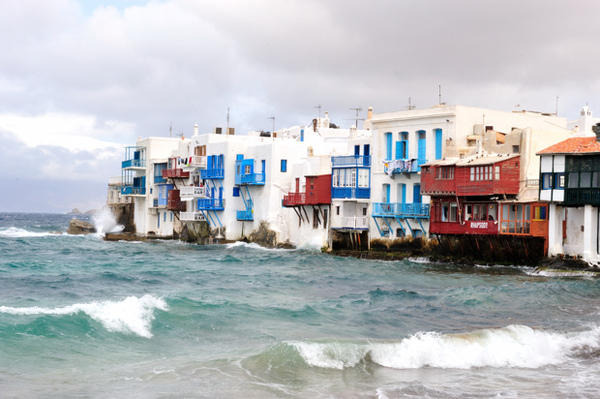 而距離風車不遠的海灣, 則是浪漫的小威尼斯, 沿著灣岸一間間餐廳比鄰而立, 書上介紹, 黃昏時候, 來此邊用餐邊看夕陽是一大享受, 但我在島上的期間天氣都不好, 別說夕陽了, 坐著海邊都會冷的發抖, 只好留點藉口可以下次再來.