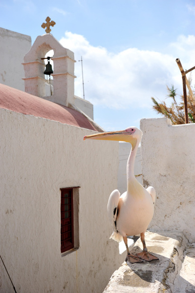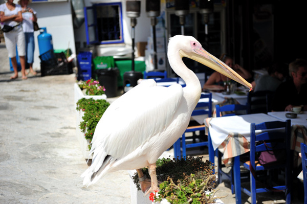 可能是一般人很少有機會近距離接觸這種動物, 所以這幾隻鵜鶘非常地受大家的喜愛, 他們平時沒事會在餐廳旁的空地睡覺, 醒了會跟大家一樣在鎮裡逛大街, 身後老是跟著一堆觀光客在拍照, 超級有趣, 有機會可以摸摸他們, 不過他們不耐煩時, 會用長長的鳥嘴嚇唬人.
