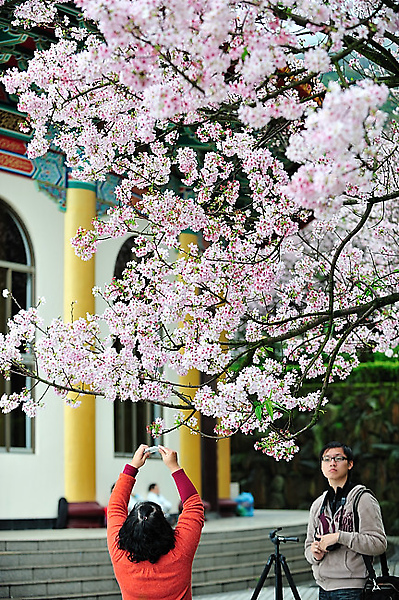近年來, 台灣也瘋起櫻花, 以往要到日本才能欣賞的櫻花美景, 漸漸地在台灣的許多地方也都看的到了, 像是嘉義的阿里山以及台中的武陵農場, 都有相關的櫻花季活動, 而在台北最著名的賞花去處, 就非淡水天元宮莫屬了.